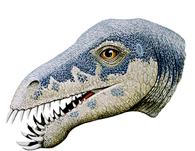 Majungasaurus was the top predator on the island of Madagascar in the latest Cretaceous. About 21 feet long, it was a very unusual theropod dinosaur and is the best known of a group known as abelisaurids.